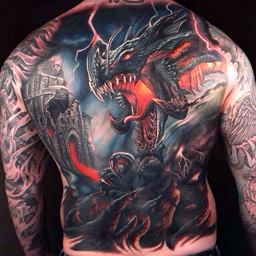 Тату дракон на всю спину