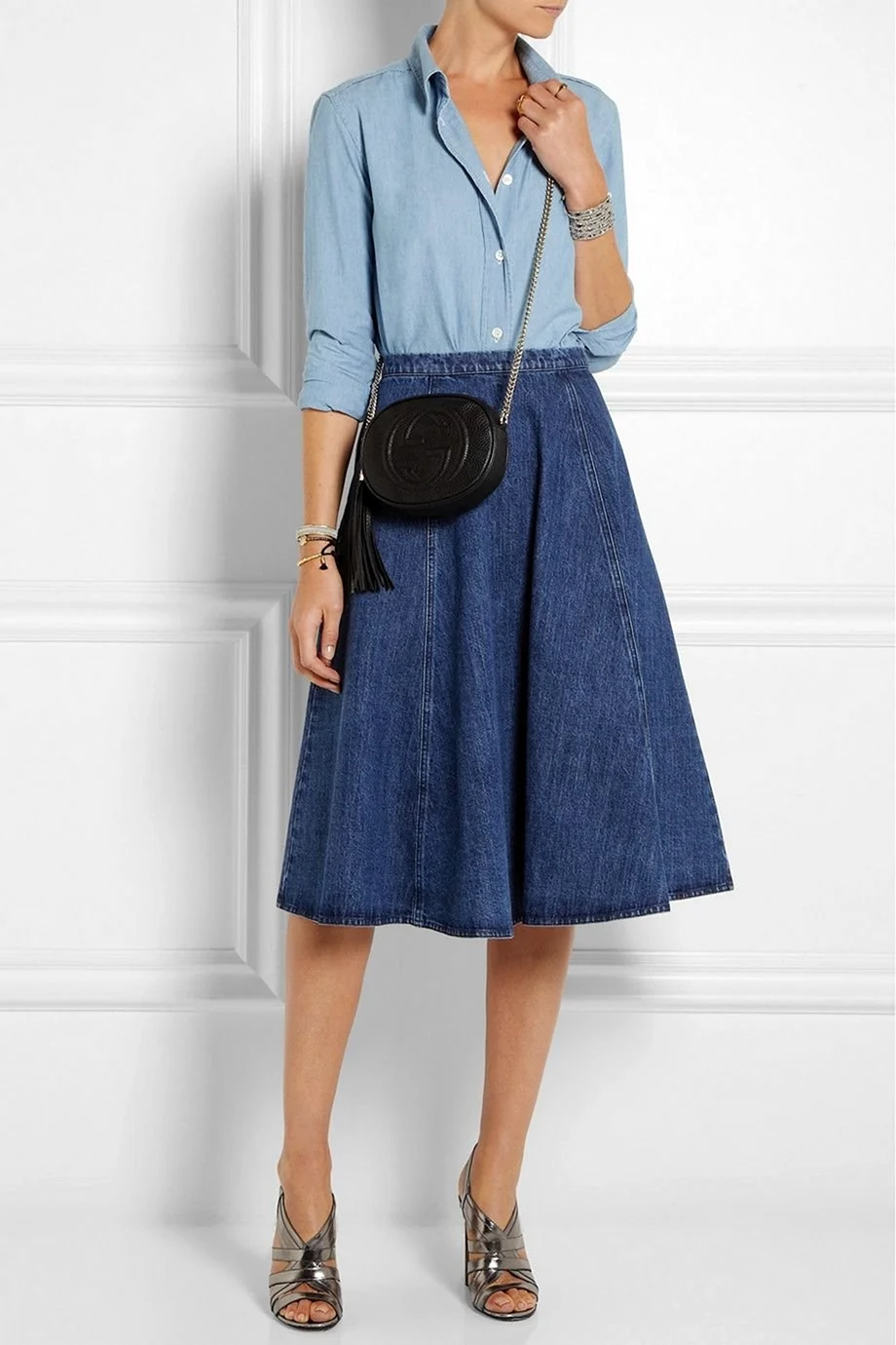 Джинсова спідниця міді стріт стайл