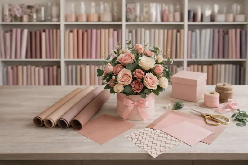 У майстерні флористична упаковка для квітів вирішує не питання смаку, а питання процесу: швидкість збірки, повторюваність результату, контроль витрат і порядок на робочому столі. Коли матеріали підібрані навмання, з’являються типові «болі»: папір рветься на фальці, плівка з’їжджає, стрічка дає зайвий вузол, а зайві шари роблять основу товстою і незручною для фіксації. У потоці це відчувається одразу – команда витрачає час на підрізання, переробки та пошук «того самого» рулону. Сучасний букет, як правило, зібраний швидко і має керовану геометрію, тому матеріали повинні працювати як інструмент, а не як лотерея. Якщо раз налаштувати підбір, флористична упаковка для квітів перестає бути хаотичним набором і стає системою.