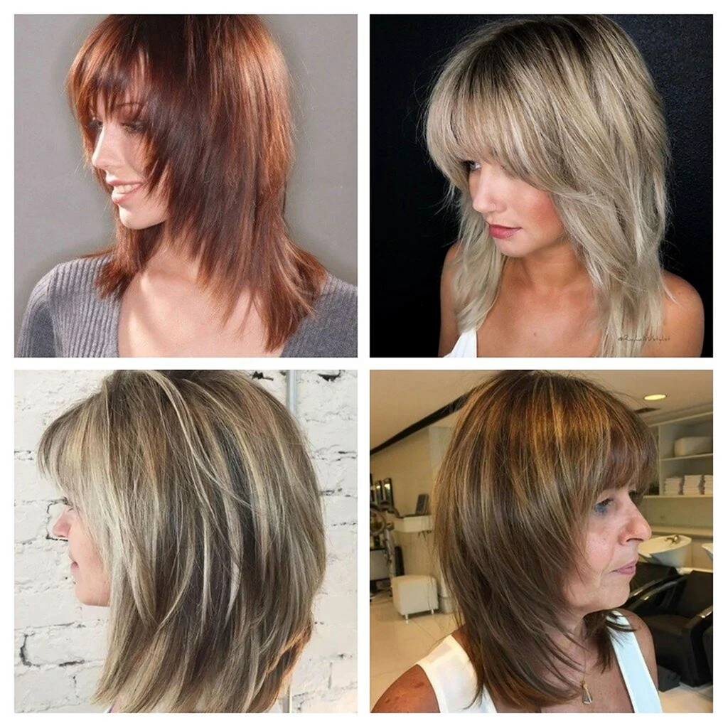 Стрижка Каскад драбинки на середнє волосся з чубчиком
