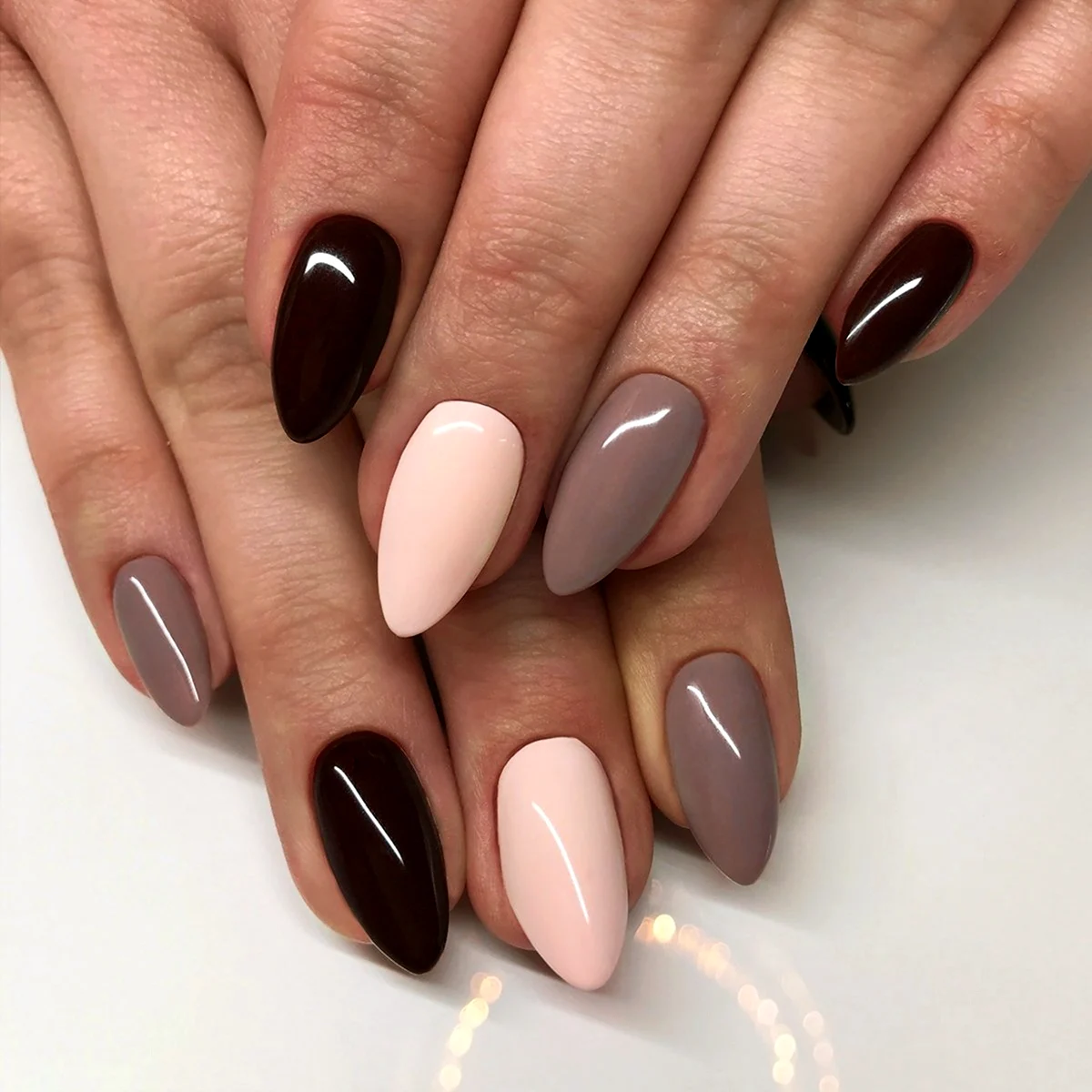 Різнокольоровий манікюр у коричневих т