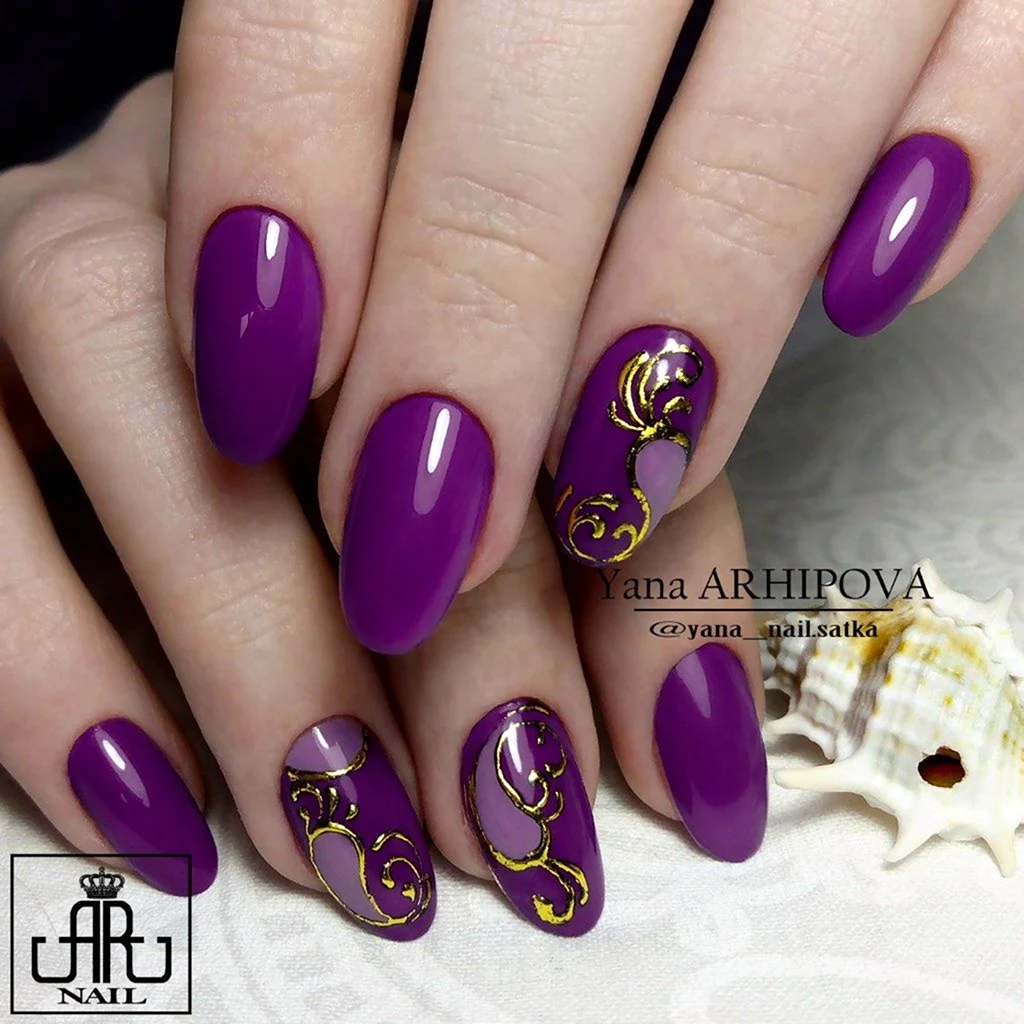 Дизайн нігтів бузкового кольору із золотими акцентами надає розкіш та елегантність вашому образу.