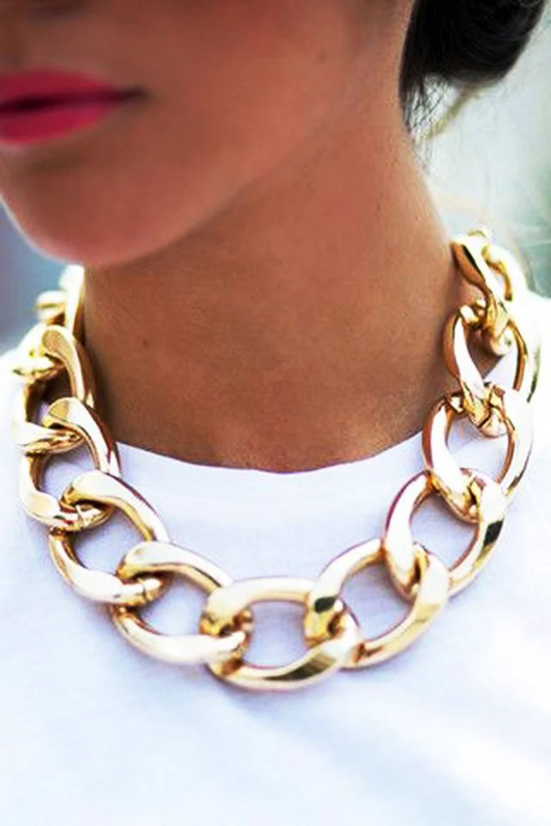 Як носити намисто великого ланцюга? Одним із способів поєднання цього аксесуара з іншими прикрасами є його поєднання з меншими ланцюжками. Така гра текстур створить гармонійність образ. Також намисто великого ланцюга можна носити у поєднанні з великими блискучими сережками чи кільцями.