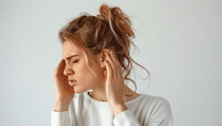 Самый заметный симптом — приглушённый слух, как будто вы говорите через толстое стекло или находитесь под водой. Звуки теряют чёткость, становятся глухими и размытыми. Параллельно часто появляется ощущение давления или тяжести внутри уха, иногда — эхо собственного голоса.