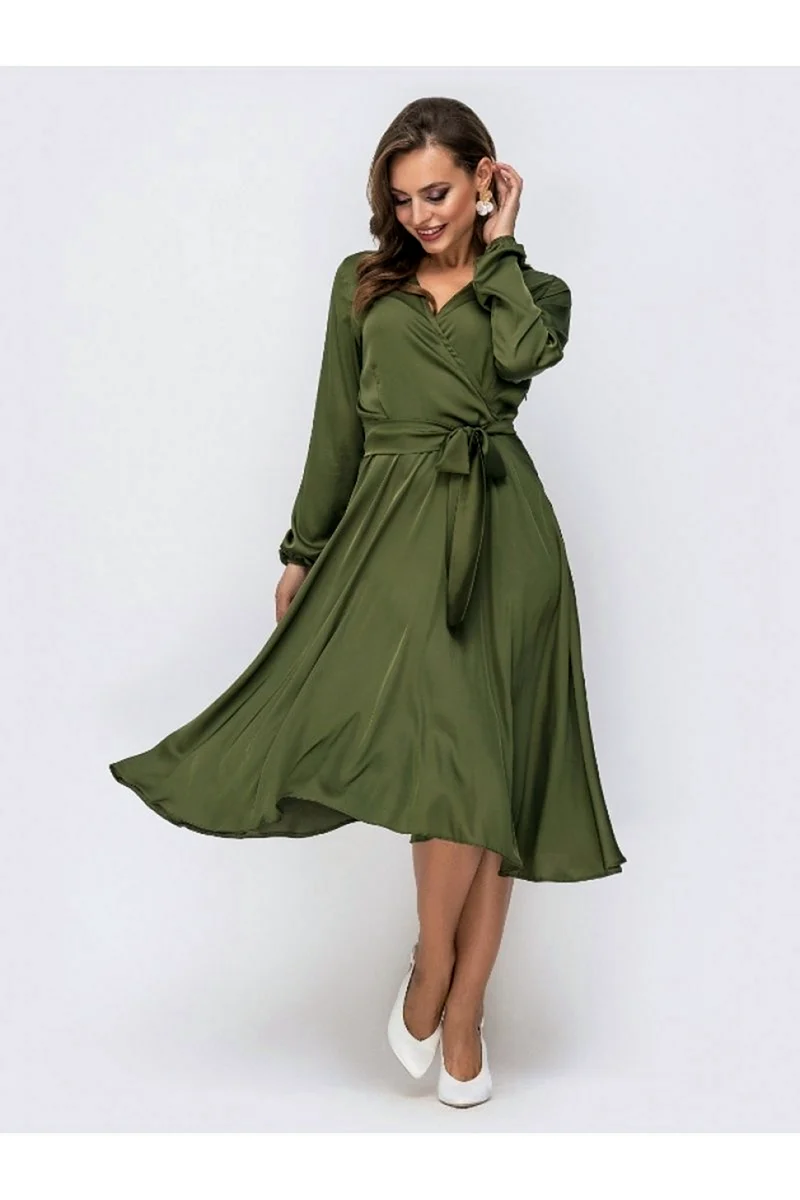 Сукня оливкового відтінку з атласної тканини