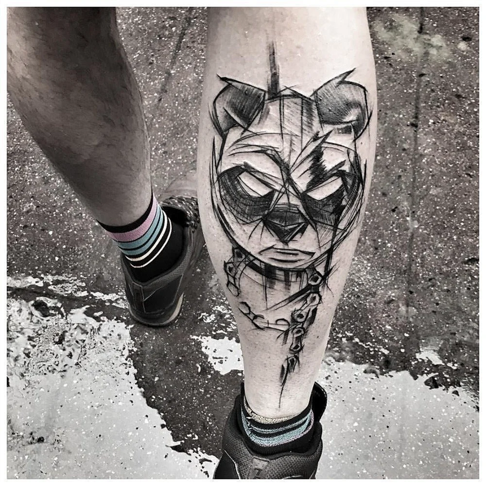 Тату в стилі скетч на нозі