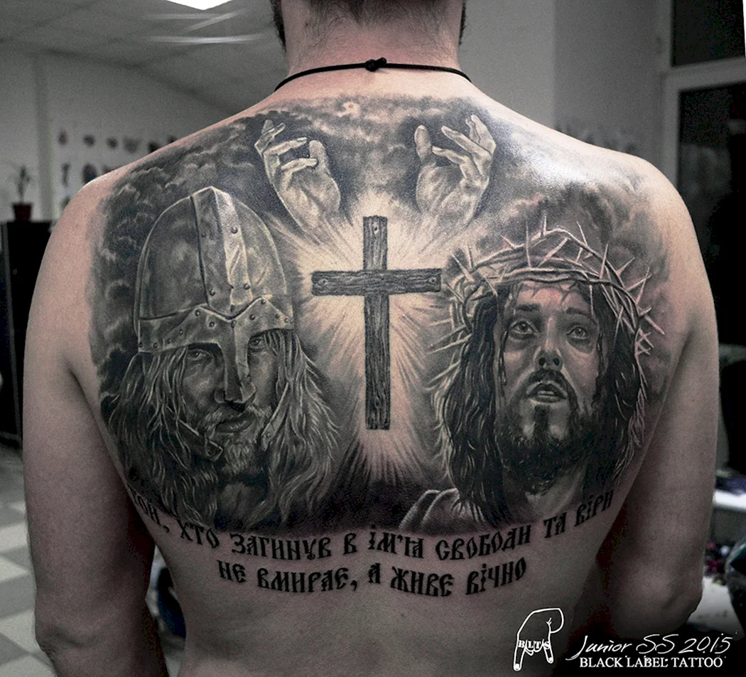Тату на спині чоловічі написи